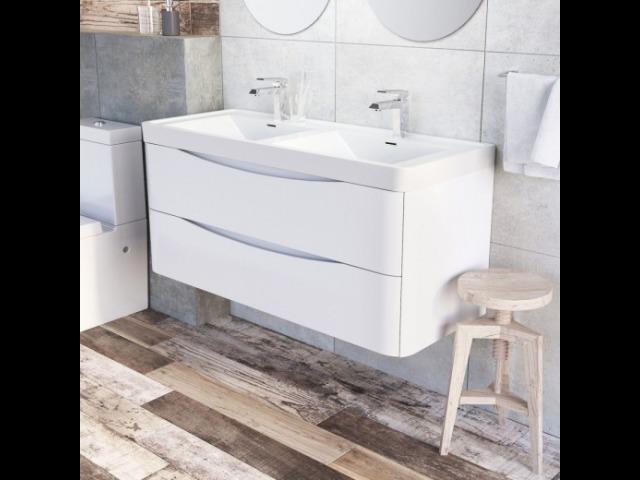With moulded curved handles smooth gloss white finish, the Motiv 1200mm vanity unit is ideal for the modern bathroom. Features: