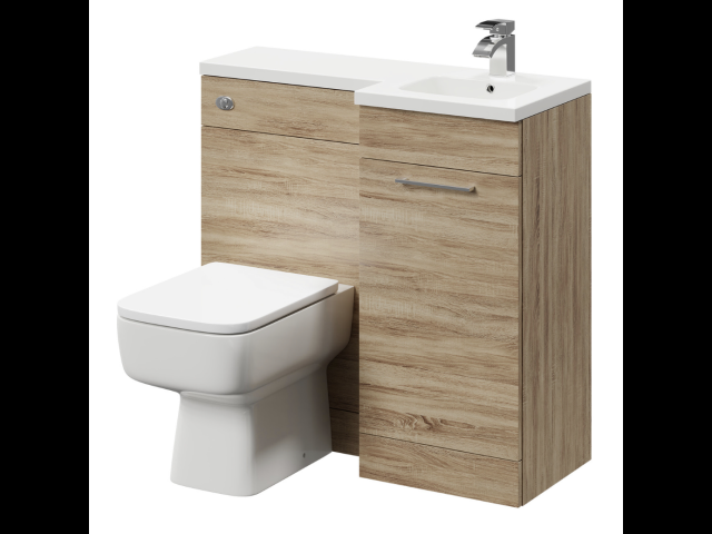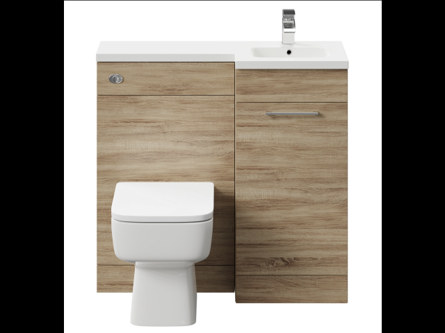 Bordalino Oak Floor Standing 1 Door Vanity Unit with Polished Chrome Handle