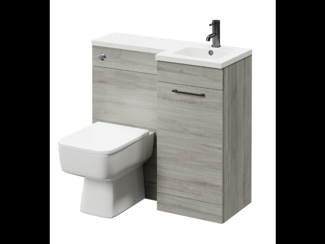 Molina Ash Floor Standing 1 Door Vanity Unit with PGun Metal Grey Handle