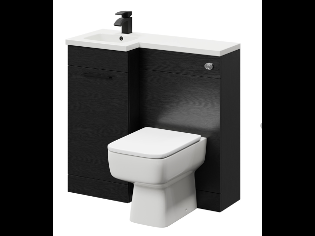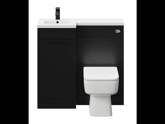 Nero Oak Floor Standing 1 Door Vanity Unit with Matt Black Handle