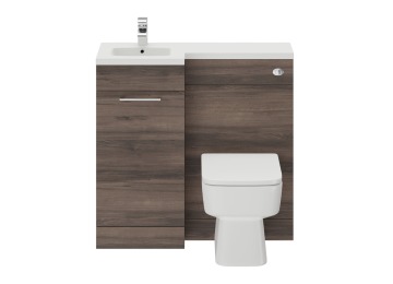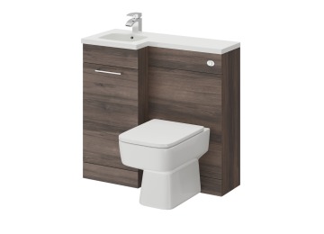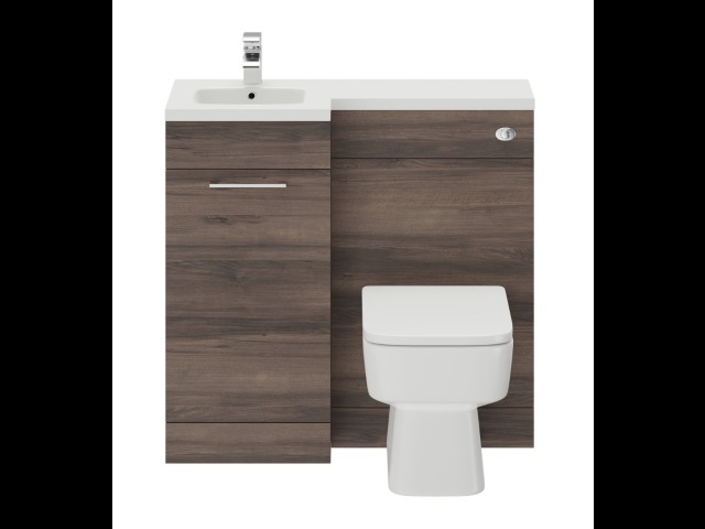 Napoli Combination Walnut 900mm Left Hand L Shaped 1 Door Vanity Unit Toilet Suite combines a WC unittogether with a basin vanity unitto create a seamless solid one-piece surface basin and worktop for a luxe finish.