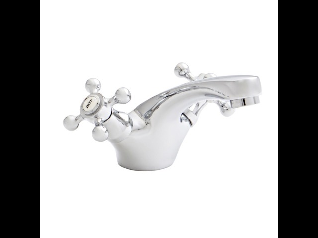 A traditional Mono Basin Mixer crafted and presented in a beautiful modern style. Featuring cross head handles, ceramic insets, beautifully crafted brass body with a well polished chrome finish. This product also comes with a Lifetime Guarantee.