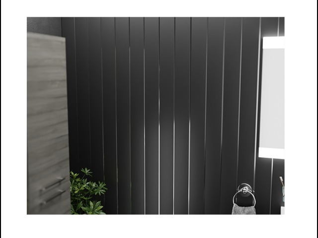 The black silver strip design creates a modern look that doesn't require the upkeep of tiles. Use or exclusive trims to connect each panel together to create a guaranteed waterproof seal
